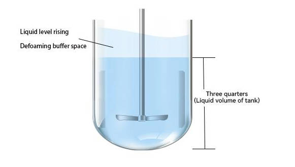 First of all, in the early stage to ensure that the amount of liquid in the tank does not exceed three-quarters of the internal space of the fermenter, the remaining space is on the one hand to fermentation aeration after the rise of the liquid level has room to spare, on the other hand, is also in order to leave a buffer time for defoaming.