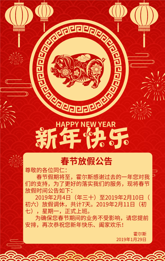 您現在閱讀的文章是:霍爾斯2019年春節放假公告。